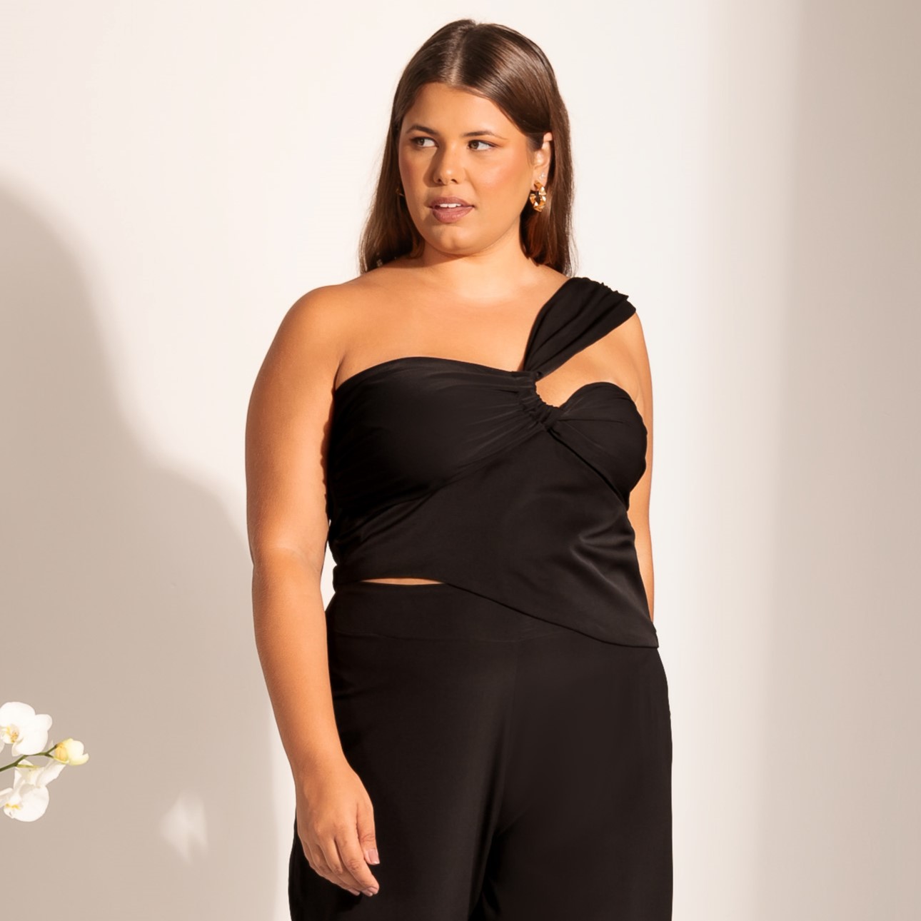 Detalhe: Recorte diferenciado lateral; Um ombro só